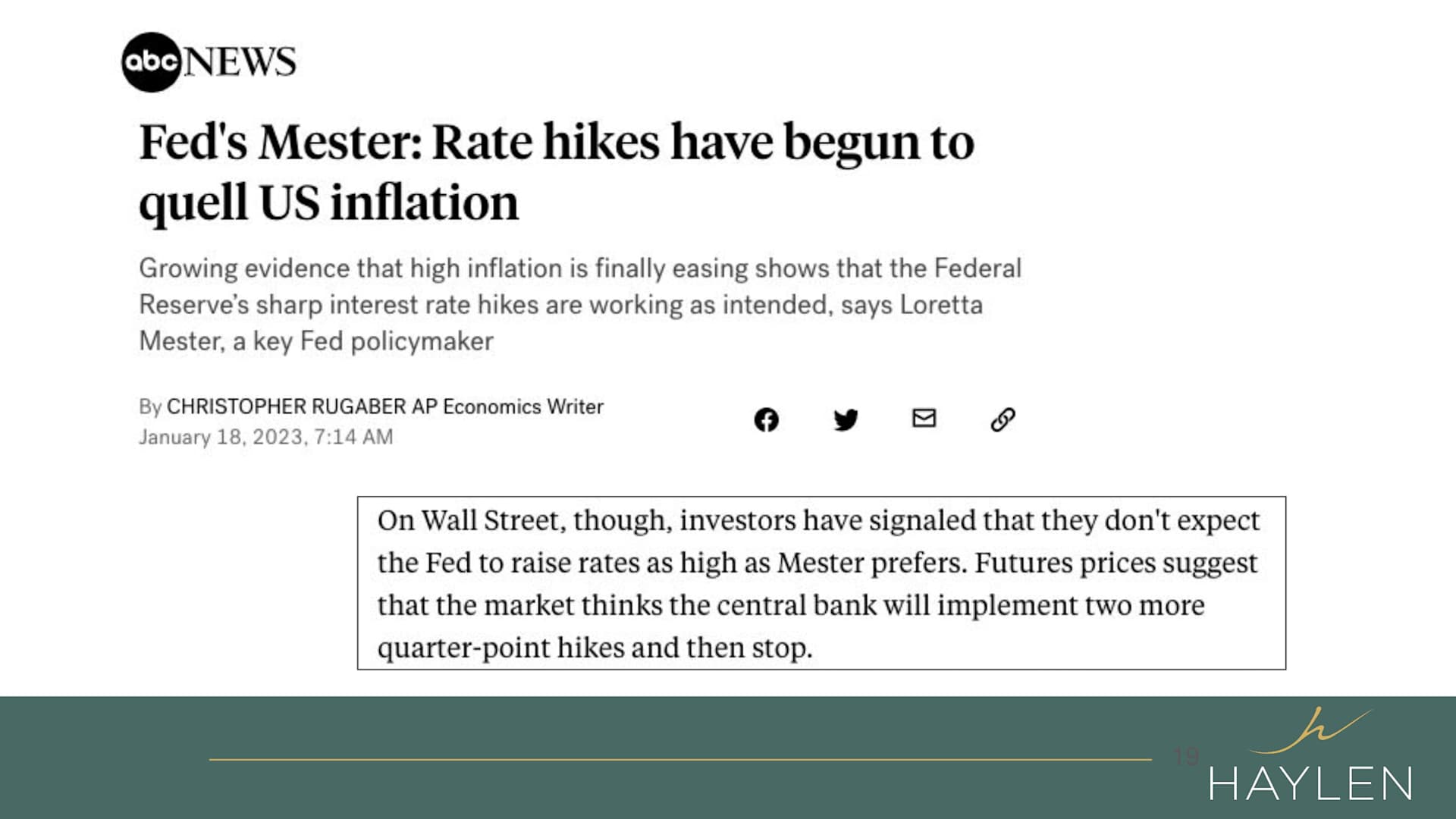 A lot of times now a lot of economists starting to say that this recession is going to be mild. "The rate hikes have begun to quell U.S. inflation." They are starting to see that U.S. inflation is starting to come down. At least, it is towards the right direction, not where they want it to be yet, but then it is towards the right direction.
