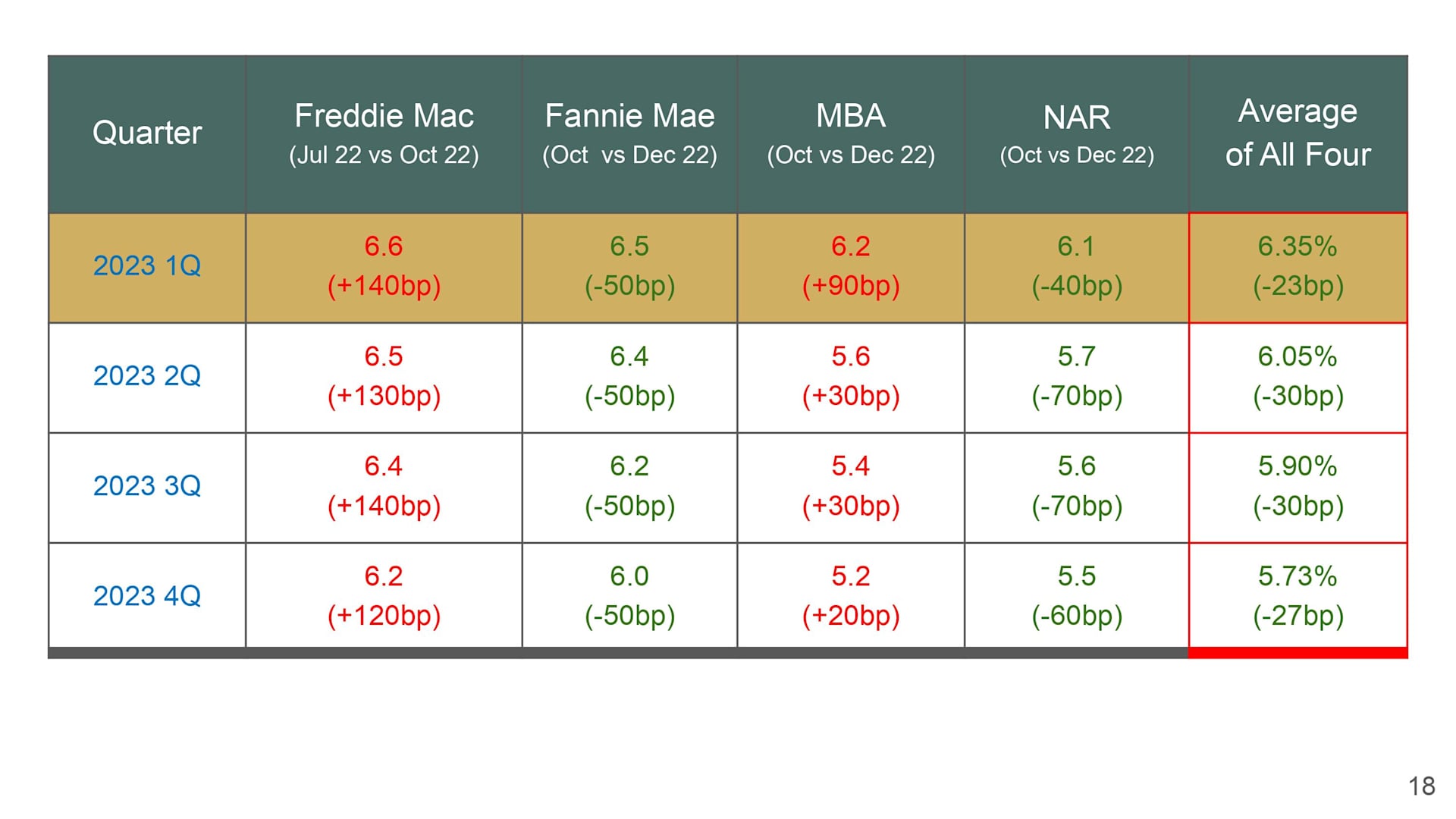 It is the same for National Association Realtors. They have adjusted their projections, so they are projecting that the mortgage rate also peaked in 1Q 2023 and started to come down.
