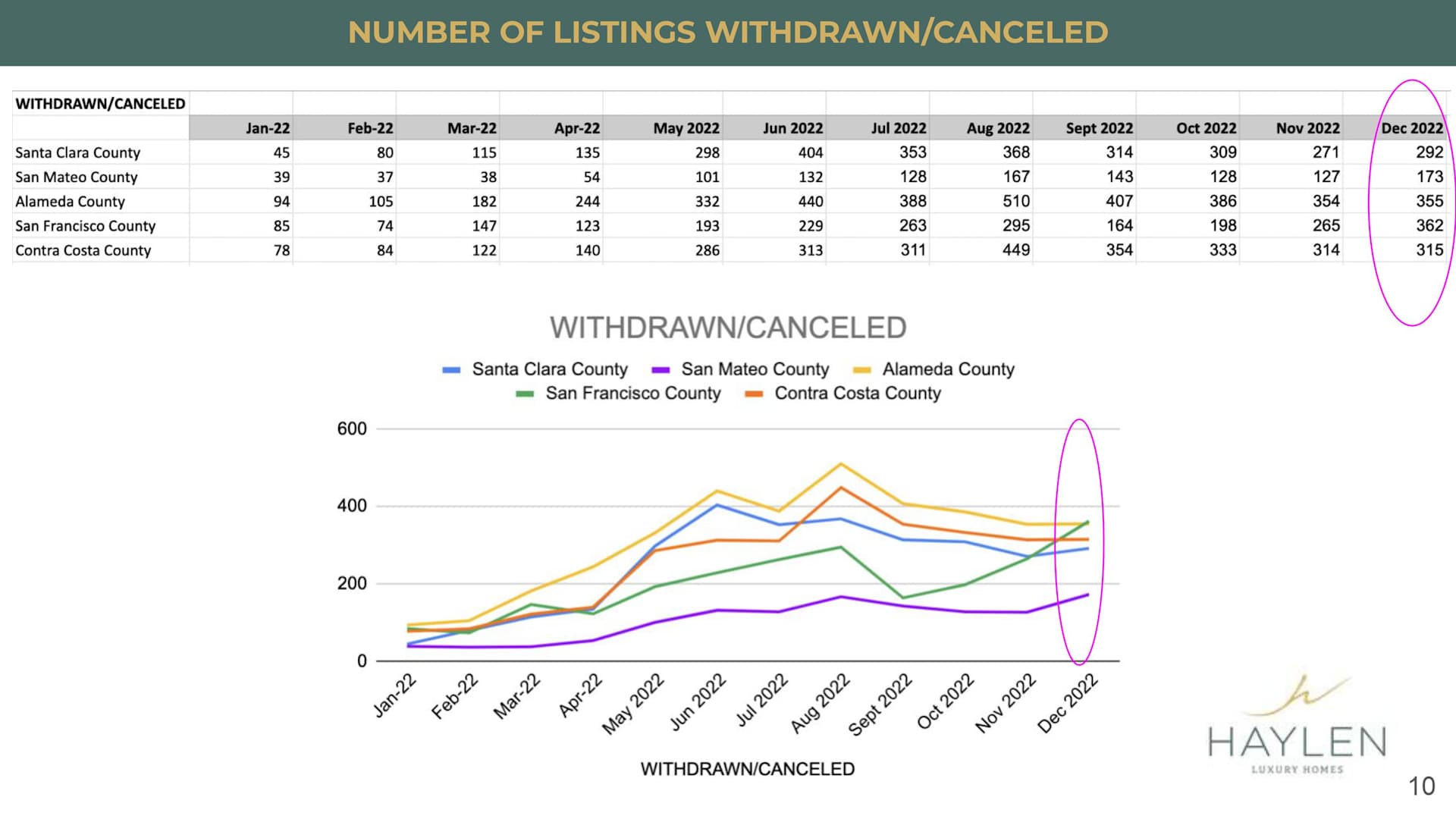 Now, we look at how many listings have been withdrawn and canceled and you'll see that the number of listings withdrawn peaked at around June and July and August and then it just started to come down but then in December, we're starting to see that people kind of pulling their listings off the market again because as you know that if they cannot sell it by December, they would probably decide to just pull it off the market until January. So, we should start seeing a little bit more inventory in January or actually I would say February because we have been having such rainy days and then yesterday and today and finally, I was like wow! I feel like I missed the Sun. We haven't seen the Sun for so long. So, for the month of January, it has been a bit slow as well because of the rain.