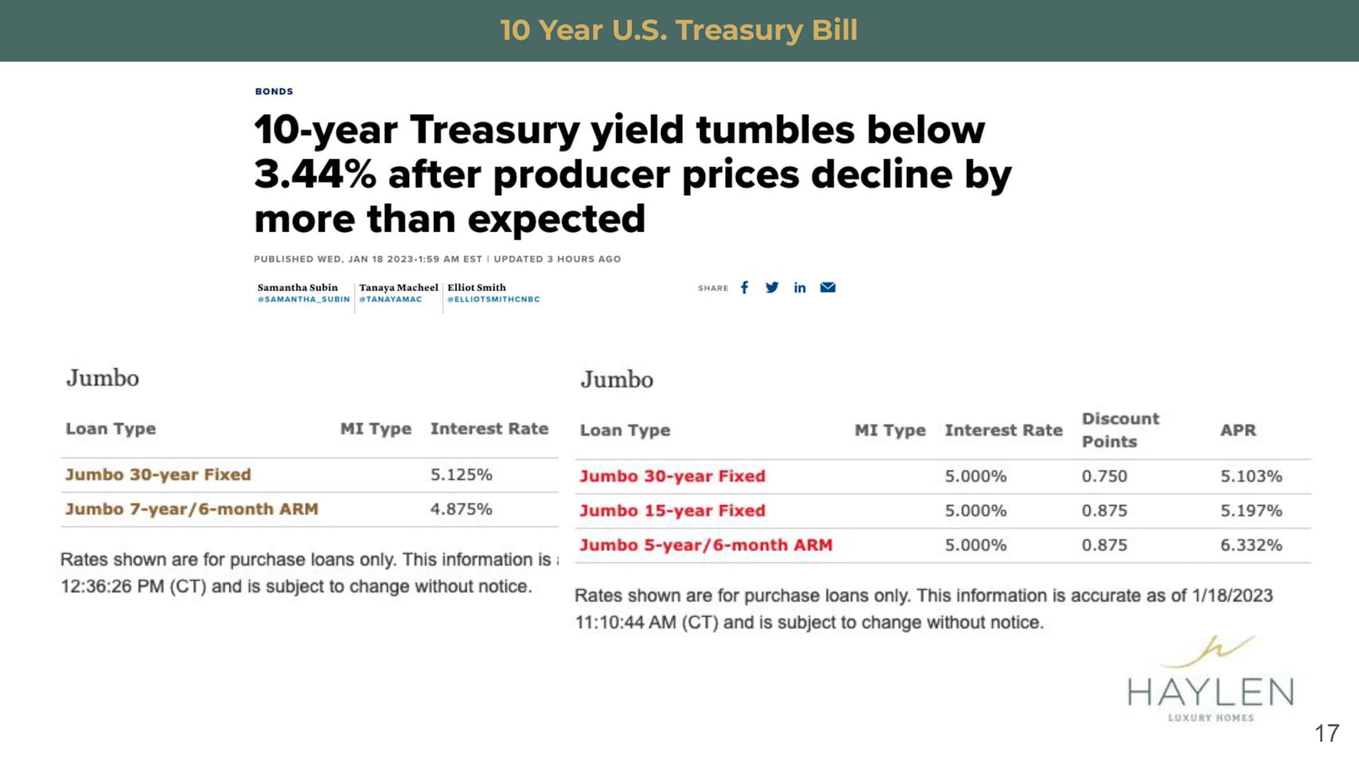 Let's look at the mortgage rates projections now. If you guys paid attention, the 10-year Treasure yield actually had come down a little bit and you know 10-year Treasury yield kind of correlates with the 30-years mortgage rates. As an example, on January 13th, you'll see that Jumbo 30-year fixed is about 5.12%, and this is provided by Wells Fargo by the way. Today, the 30-year Fixed Jumbo has come down to 5%.