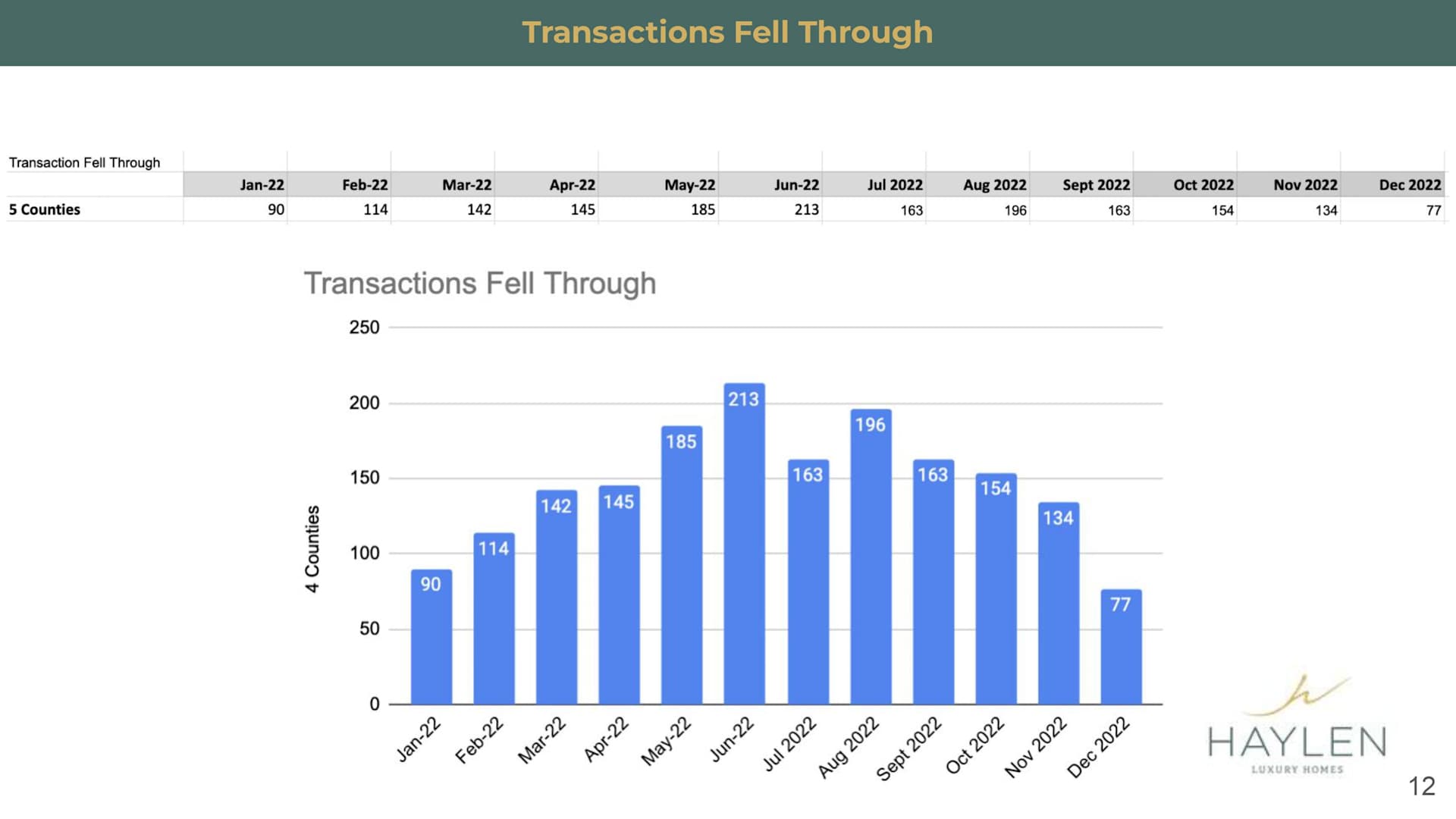 How many transactions fell through? We only have 77 compared to all three digits most of the year. So, only 77 transactions fell through. I would say that this number is not real because everything has been going so well. It is more because we just have so much less transaction in December and that's why we have less transactions that fell through. We just really don't see that many transactions fall through out of all the 5 counties.