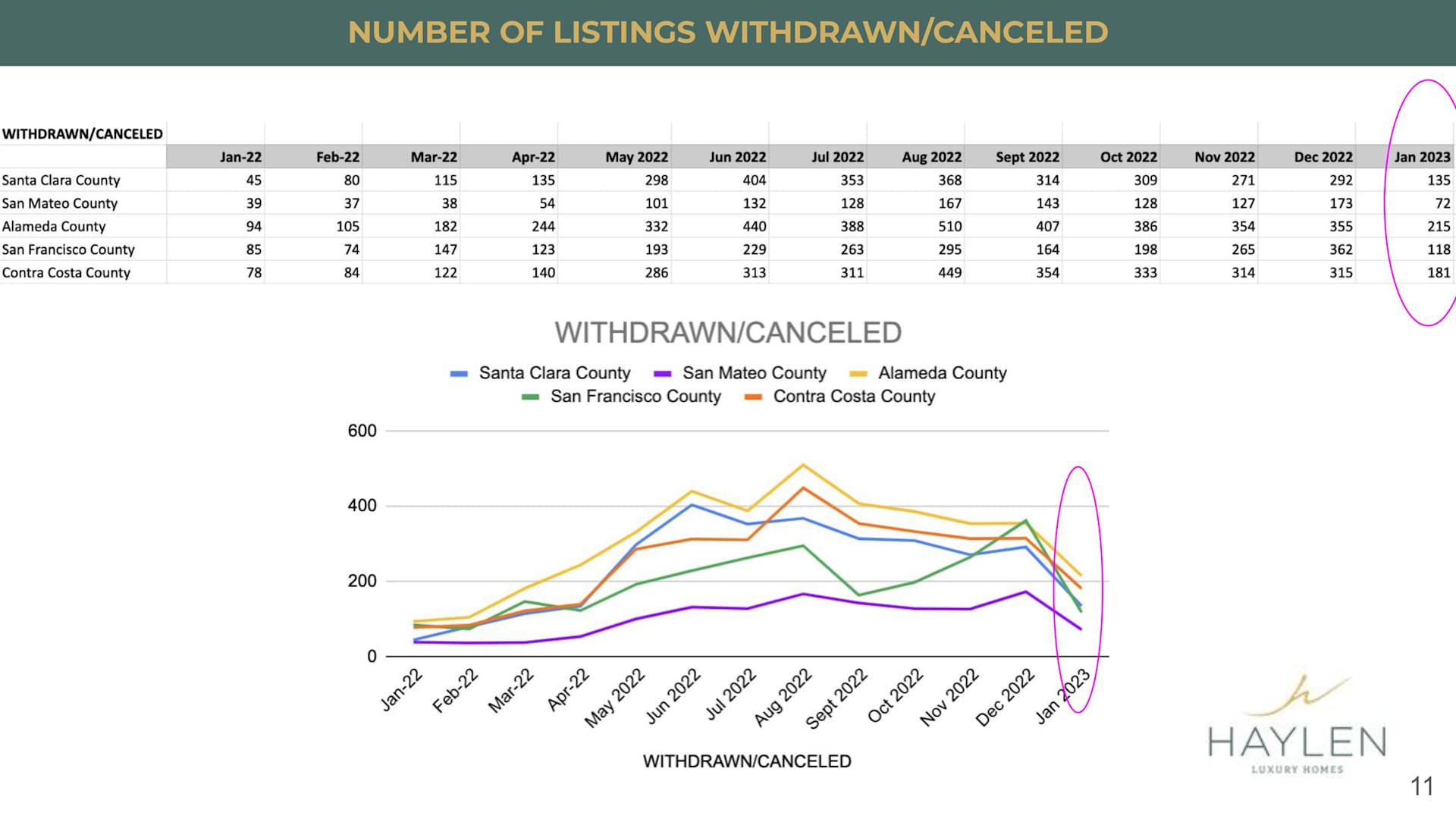 But December, of course, a lot of times, if the property is not sold by maybe the beginning of December, a lot of sellers would decide that, hey, I'm going take the listings off the market until the next spring or until next year when the market comes back up. So, this is the reason why you see that there's quite a bit much higher in terms of withdrawn and canceled in the month of December and January, typically, we have a much lower number. But if you compare it to last year our numbers went back to about like month of April, which I thought is pretty interesting because the month of April was a very, very hot market back then in April. And January, well, I would say also our inventory is not as high so that's why we have less number of withdrawn listings and canceled listings.
