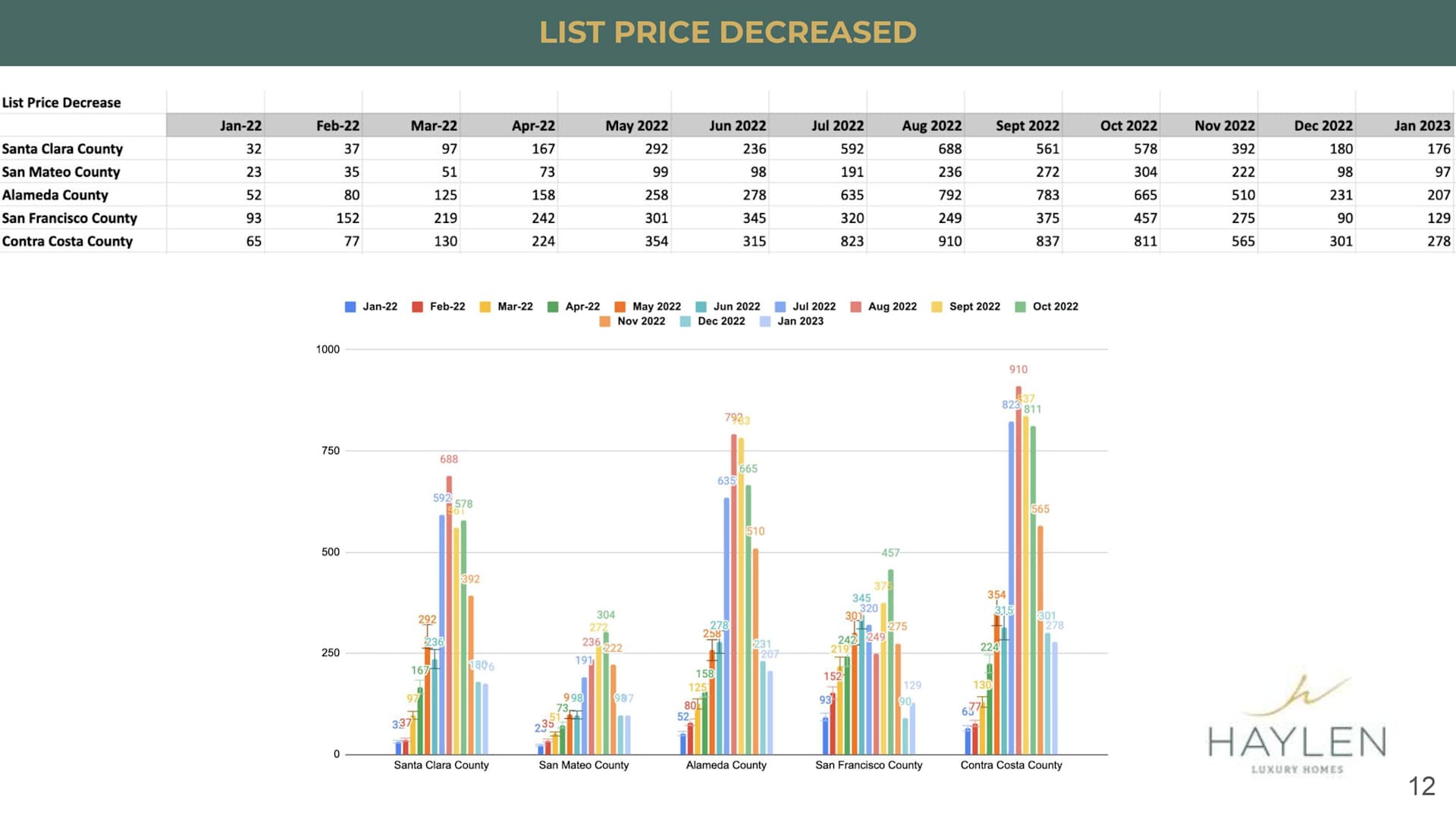 In terms of list price decreased, we are pretty much similar to the month of December, not as many compared to September, October, and November, main reason is because that a lot of sellers are a lot more realistic now in terms of asking price, and they've learned that if they ask way too high, the property is just going to sit on the market and hopefully, this is what most of the realtors are advising their clients and not to expect such a high price because right now a lot of buyers are expecting sellers to reduce their price before they would make an offer. So, a lot of times like sellers will try to maintain a certain price point that is a lot more realistic than what the buyers are expecting.