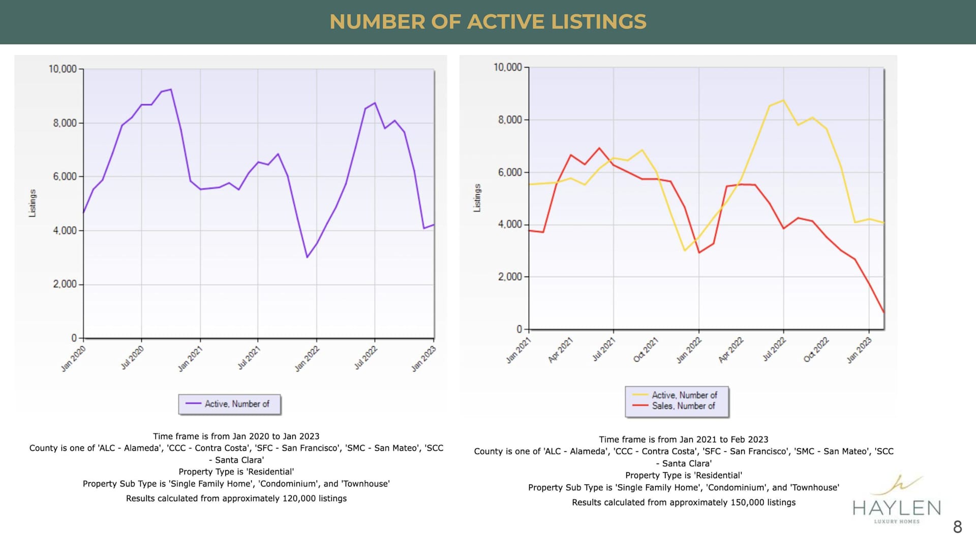 On top of that, if you look at the number of active listings versus the number of sales and you still see that there is quite a bit lower in terms of the number of sales in January because the market is so slow, in December and January, even though we already have very low listings. We don't really have a lot of listings compared to last year as you see we peaked over almost 9,000 units but at the same time because buyers are just really at this moment where they're not sure where the market is going. On top of that even though 2023 started, the rain had really stopped them from coming out to look at properties. So, that's why you see that the number of sales versus the number of active listings has such a wide gap.