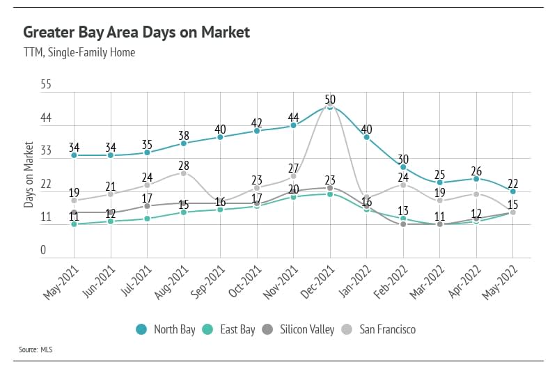 Homes are still selling extremely quickly. The Days on Market reflects the high demand for homes in the Greater Bay Area. Buyers must put in competitive offers above the list price of the home.