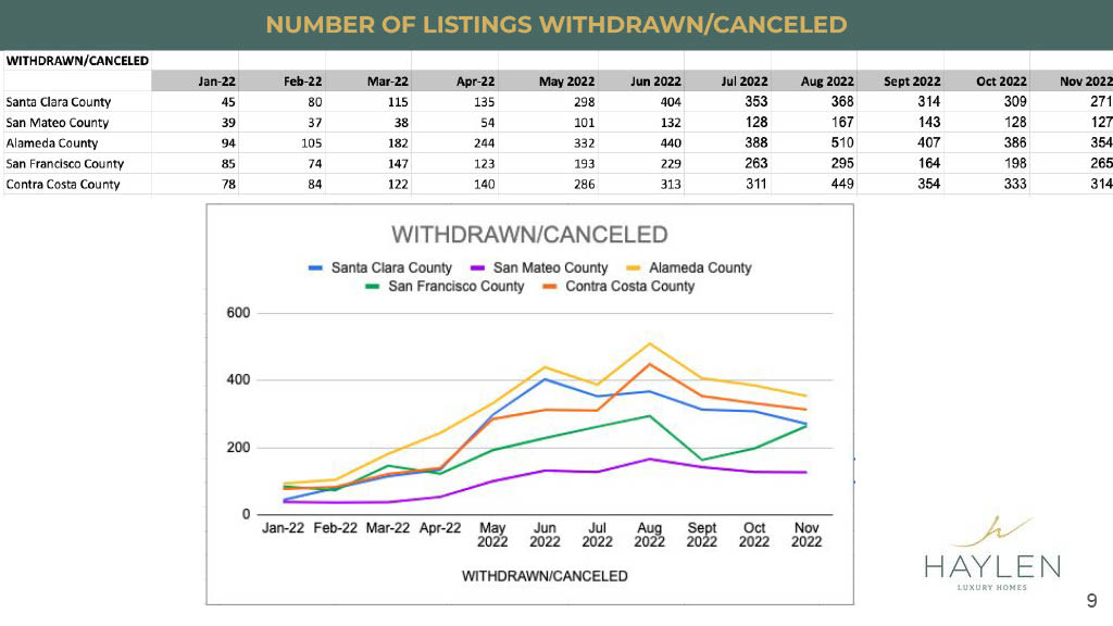 In terms of how many listings withdrawn and canceled, we trapped it because, of course, during around months of May and June which is shot up so much, the market is not even like slow, the market felt like it just paused, went back to 2020 around March and April. Although the market is open but there were no buyers anywhere. Buyers were just not looking at that time. So, you can see that at the time around May and June, there were just these huge numbers of listings being withdrawn or canceled but then the numbers are starting to come back down and they are normalizing. The number of listings, they don't have as many withdrawn and canceled. The sellers who are on the market, they now finally understand that the market has been volatile. If they are ready to put it on the market, they understand that they're not really going to be able to get the price that they were hoping for back in May or June, so we don't see as many withdrawn and canceled anymore.