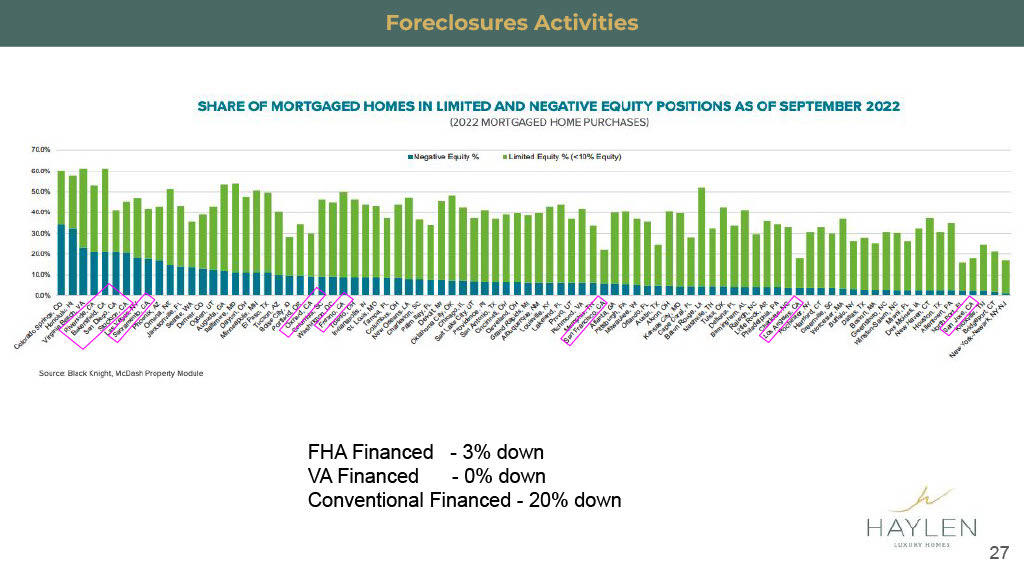 I thought this is important to look at because if we are worried about foreclosure activities, we definitely need to look at the statistic whether how much equity these properties have. And as you see a lot of times these areas, Riverside, Bakersfield, Stockton, or Sacramento, they probably have a little bit more people use FHA Finance or VA finance and they only require 3% down and 0% down which means that they will have a lot less equity on the property versus in San Jose area, a lot of people have to use 20% down conventional financing in order to buy the property so that's why they have a lot fewer people have negative equity on their property.
