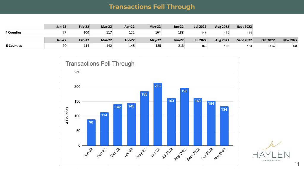 In November, we actually have dropped quite a bit to only 134 deals that were transactions fell through for all five counties and honestly, 134 is really not that much if you look back to the beginning of the year, March or April, we're around the same numbers over that time. So, really 134, this number is actually pretty good for all five counties.