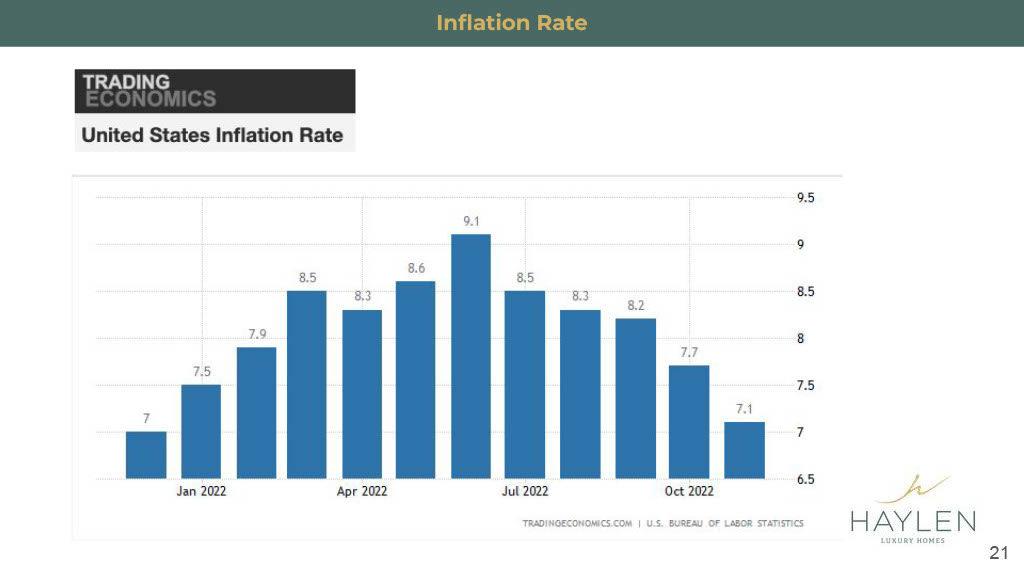In terms of the inflation rate, as we mentioned, the inflation rate has been pretty high, starting in January, at 7.5%, all the way peaked at 9.1% in June and now it came back down to 7.1%, which is not a great number yet, but it is going into the right direction at least.