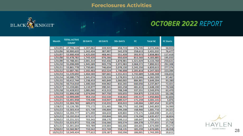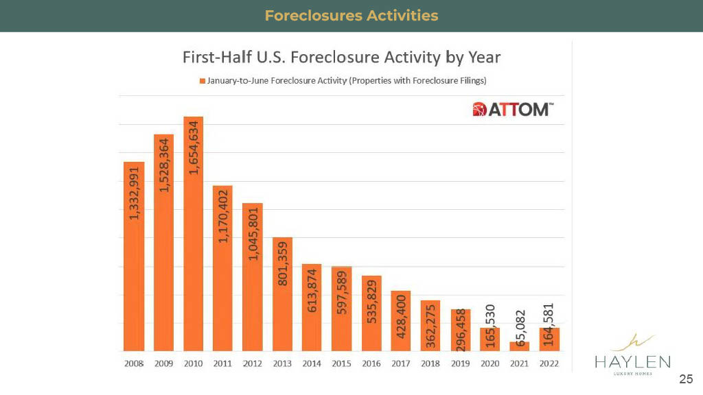 If we look at 2008, the Foreclosure activities from January to June filings, 2008, during the last March recession, those are all over a million foreclosure activities and right now, in 2022, the first half, we had about $164,000 in foreclosure activities.