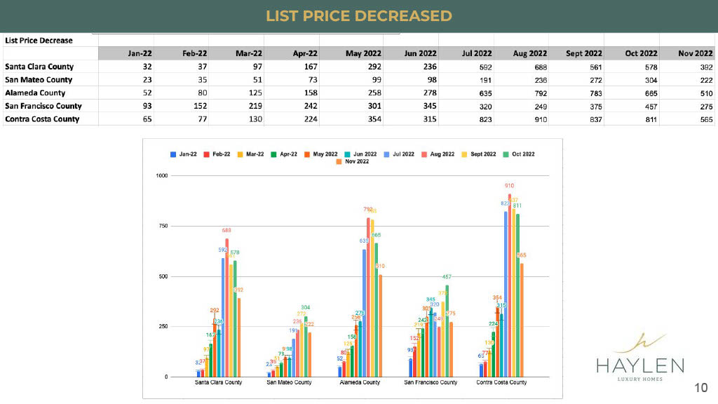 It is interesting as now you see that a lot fewer listings in these counties have price decreased compared to previous months. One of the reasons is probably because again a lot of sellers set better expectations in terms of the asking price. We noticed that a lot of sellers were still trying to act at a really high price and then realizing that hey, it's not moving and then they finally have to lower it. But by the end of the year, a lot of sellers do have to get it sold within this year, ideally by end of the year. So, that's why a lot of them are just like we are going to just go in with a lower asking price, hopefully, we can gain some interest quickly, and then we can close by year-end.