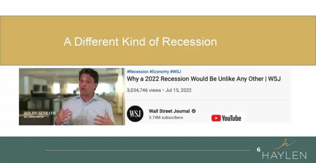 The reason why is that I just recently watched a video on youtube by Wall Street Journal and this is by John Helsenrath and he’s a Wall Street Journal senior writer. He said that this 2022 recession would be unlike any other. So, I was like okay I’m curious, I want to watch, I want to see what he means by that and the first thought was that he’s going to say this recession is going to be really bad and it’s going to be worse than the previous ones. And once I started watching it, I thought it was very interesting and that was kind of like what I’ve been talking about in our last episodes, why this recession is a little different and there are a lot of factors that we cannot really right away say that yes this is going to be really bad or it’s going to be okay.